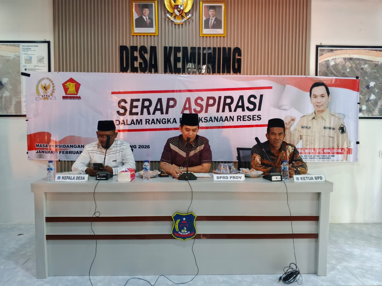 Wakil Ketua DPR Provinsi Jambi, Dr. Faizal Riza, ST., MM., melaksanakan Reses di Aula Perpustakaan Desa Kemuning, Rabu (4/2/2026). Kegiatan ini bertujuan untuk menyerap aspirasi masyarakat dalam rangka pelaksanaan tugas dan fungsi legislatif.