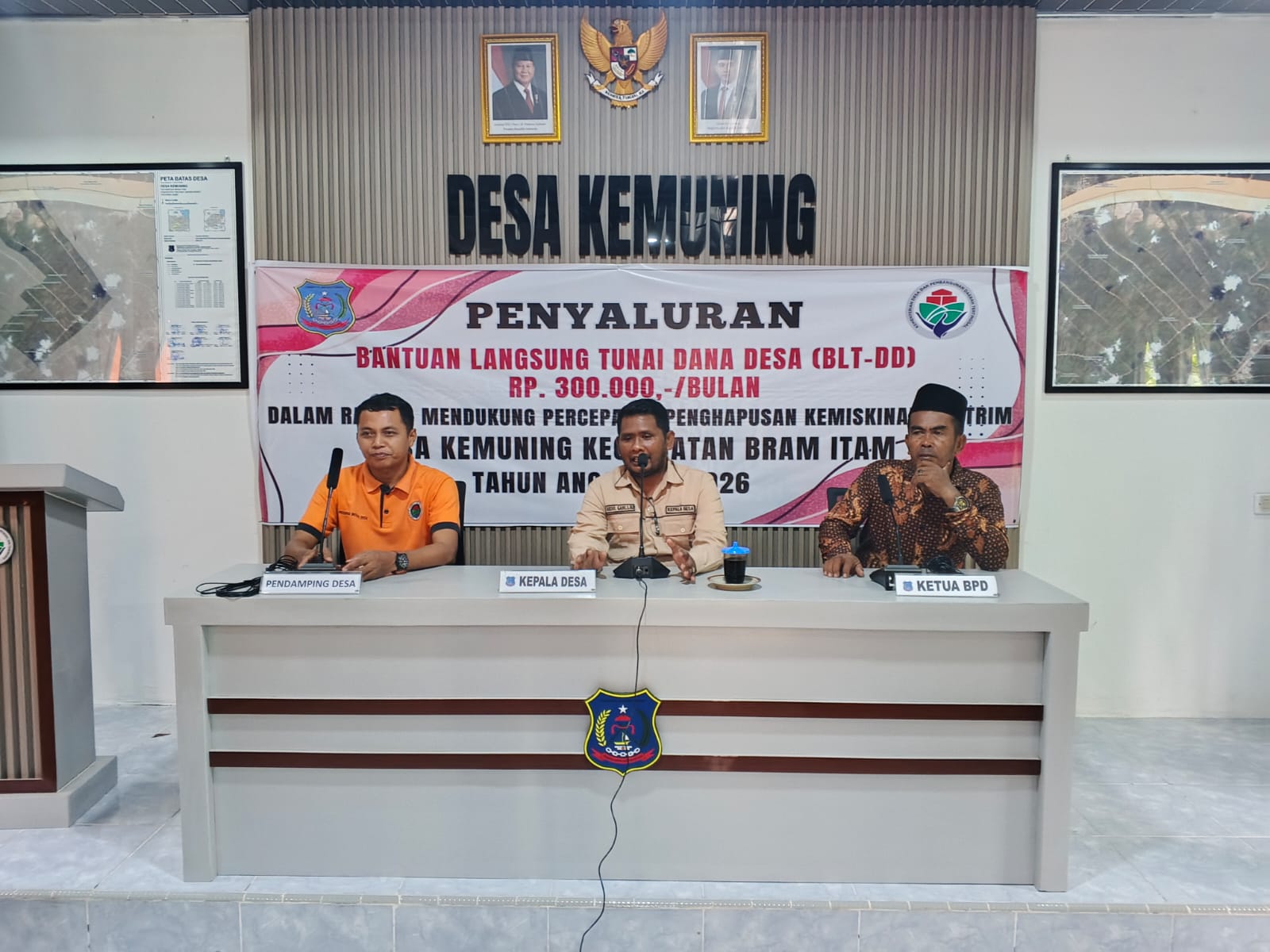 Desa Kemuning, 14 April 2026 - Pemerintah Desa Kemuning hari ini melaksanakan pembagian Bantuan Langsung Tunai Dana Desa (BLT DD) untuk bulan Januari/Maret 2026. Acara pembagian ini berlangsung di Aula Perpustakaan Desa Kemuning dan dihadiri oleh warga desa yang berhak menerima bantuan.